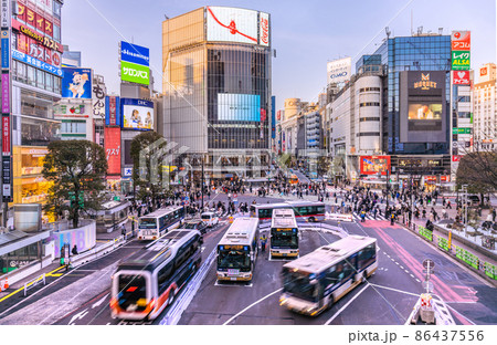 日本の東京都市景観 バス続々…驚きの光景。渋谷駅西口バスターミナルの転回所がお目見え=渋谷