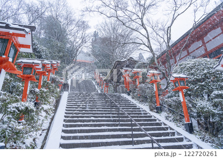 冬の鞍馬寺 九十九折参道 石段と灯篭