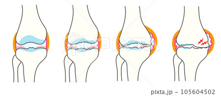 変形性膝関節症のシンプルな進行度別イラスト