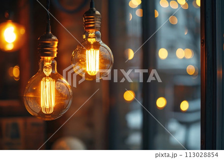 Capture the warm glow of vintage bulbs against a twilight backdrop