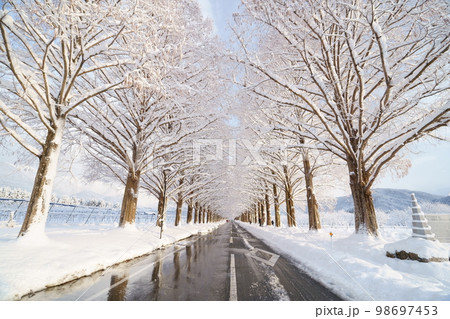 冬、雪のメタセコイヤ並木 滋賀県 高島市 マキノ
