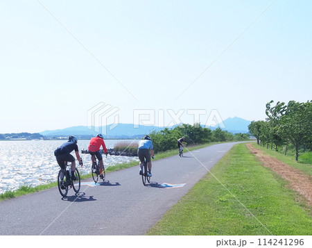 つくば霞ヶ浦りんりんロードをサイクリングするサイクリスト