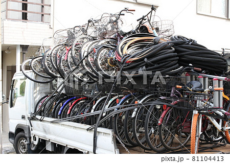 使われなくなった自転車を積んだトラック