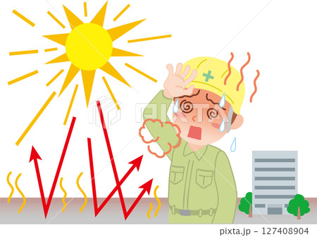 熱中症_輻射熱_作業着の屋外で働く人_文字入り