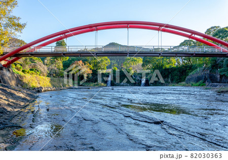 佐賀県嬉野市の轟の滝を見る橋 赤い橋