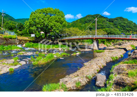 日本の川景色:佐賀県嬉野市にある轟の滝公園を流れる塩田川