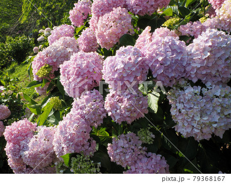 自生しているように自然に咲き誇っている金山サクラアジサイ園のあじさい 福岡県田川郡糸田町