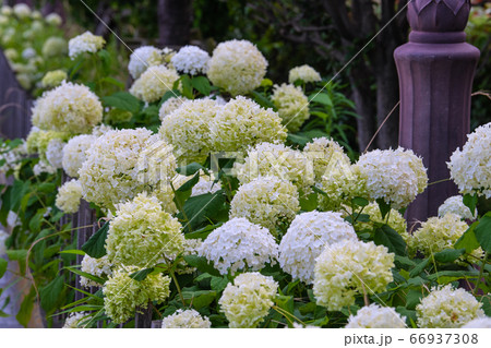 日本の東京都市景観 梅雨を彩るアナベル(東京クルーズ浅草船着場前の隅田公園側)