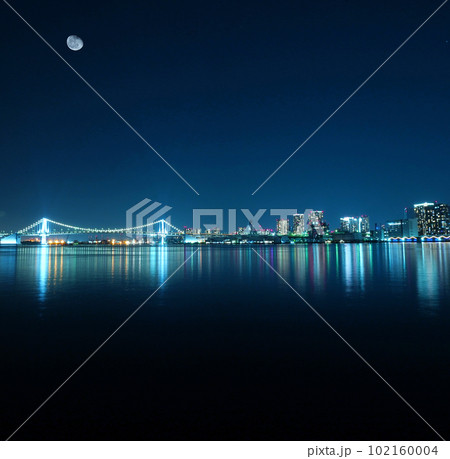月光に輝くレインボーブリッジ