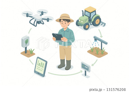 農地の上空にクラウドやGPSのアイコンが浮かぶ概念図