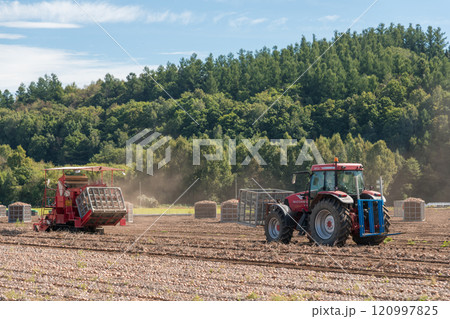 【美瑛町 ジャガイモの収穫とトラクター】