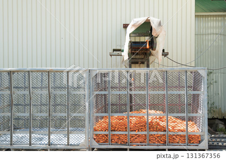 【美瑛町 コンテナに詰められた収穫したジャガイモ】