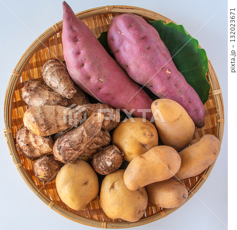 ざるに持った芋3種