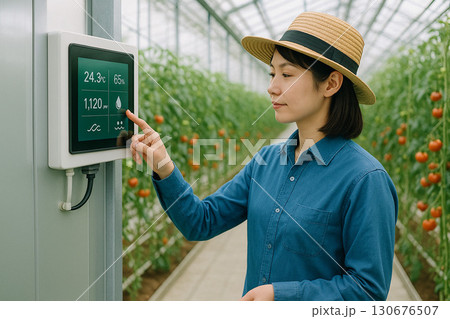 センサーや制御盤が組み込まれたビニールハウスの内観
