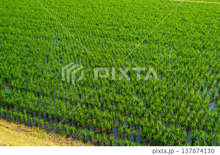 トラクターで代かきをする風景 水田とトラクター 田植えの準備作業 農作業イメージ イメージ素材