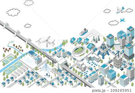 街並みの立体図. 都市の景観.