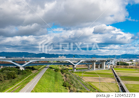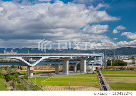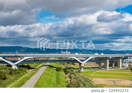田園地帯を通る京滋バイパス メタセコイア 京都府八幡市