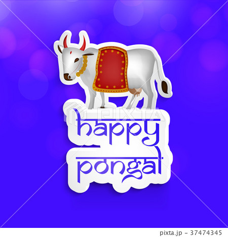 Happy Pongal calligraphy hand lettering with gold pot. South Indian holiday greeting card. Hindu harvest festival. Easy to edit vector template for banner, typography poster, etc.