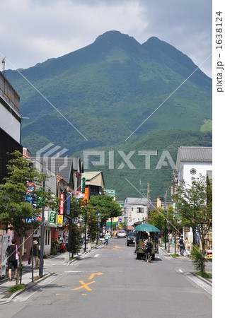 大分県 由布院駅前の町並み 辻馬車の通る風景