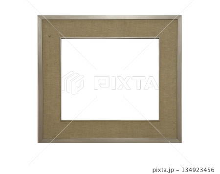 Rustic horizontal picture frame mockup with woven beige mat board and metallic border. Decorative