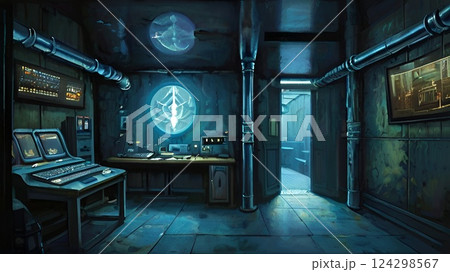 ゲーム背景 地下にある秘密のアジト地下基地風景