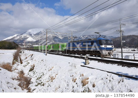 伊吹山を背景に東海道線を走るEF210牽引貨物列車