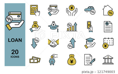 ローンに関するラインアイコンセット 住宅・自動車・教育など