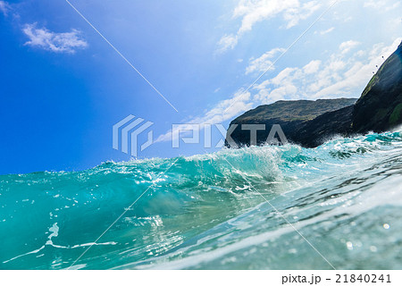 弾ける水をイメージした青い線画背景。放射状のインパクトを与えるエフェクト。