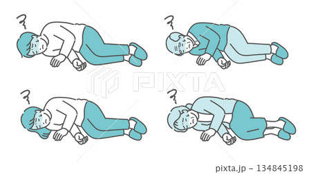 意識を失って倒れている人々のイラストセット(男女・高齢者)