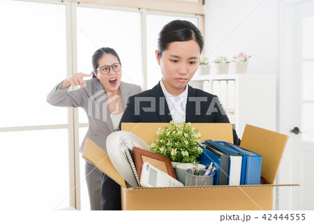Dismissals. Angry bosses and sad managers exact vector depressed business characters concept pictures of dismissals