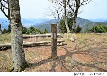 丹波市の金山城跡の登山路から表示板に従い大山荘の方向を望む