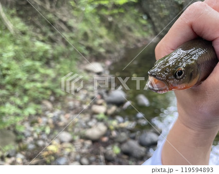 川釣り交尾の時期を迎えた婚姻色のオイカワ