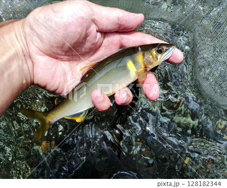 釣り上げた鮎、鮎釣り、アユ、あゆ、友釣り