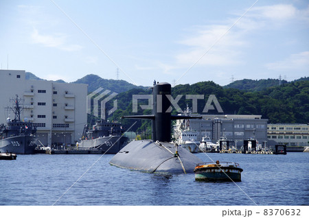 桟橋の海上自衛隊潜水艦と潜水艦基地