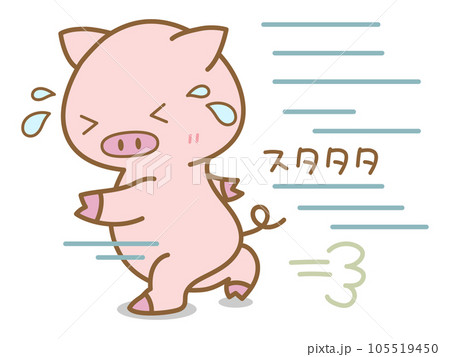かわいいペットのミニブタが走って逃げた足跡のイラスト