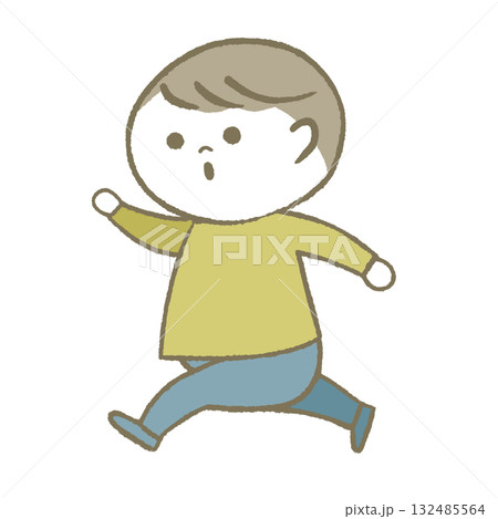 上を見ながら走る人 黄色いパンツ ダッシュ付き