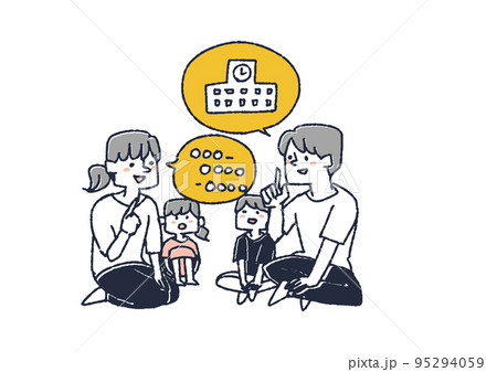 災害時の連絡先と集合場所を確認する家族 洪水、地震などの災害に直面した人々