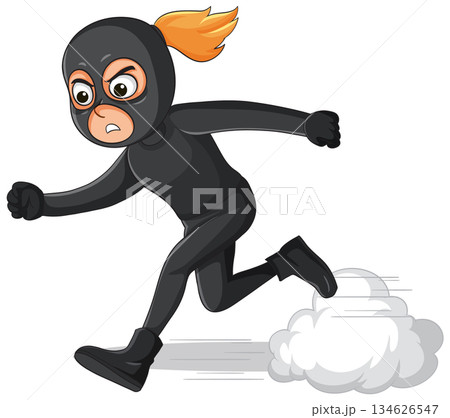 Female Burglar in Black Suit Running Quickly