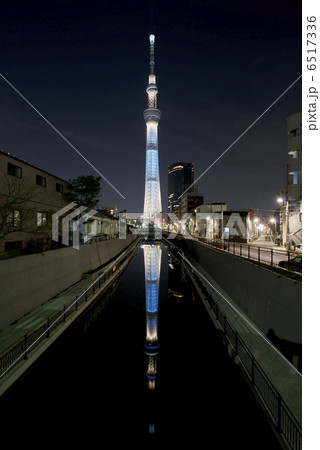 ライトアップした東京スカイツリー 逆さツリー