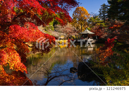【滋賀県】晴天の西教寺の庭園の逆さ紅葉