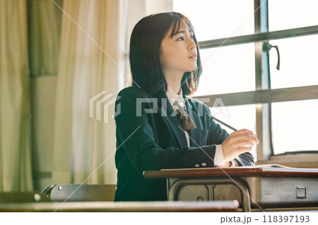 逆光の綺麗な窓辺で笑顔のクローズアップの横顔 美容やビューティーなどのイメージ