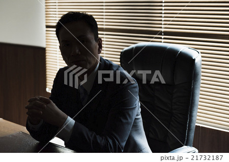 ビルの窓際で話し合うビジネスパーソンのシルエット
