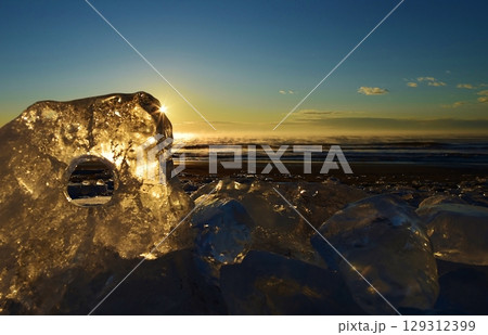 兵庫県淡路島 夕陽に照らされた波跡が広がる多賀の浜海水浴場