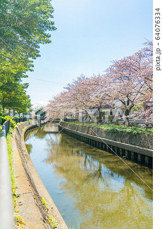 日本の春 北越谷 逆川緑の道沿いの桜並木