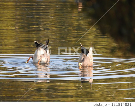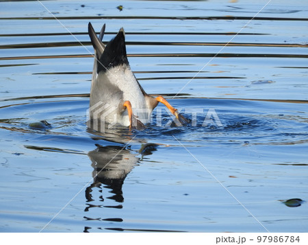 逆立ちして餌を採る鴨