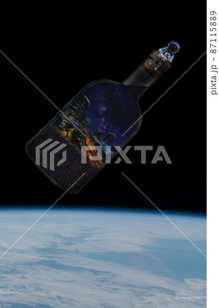 宇宙に浮かぶ東京駅と宇宙飛行士