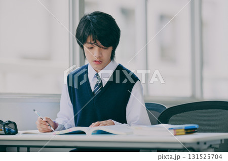 真剣な表情で勉強する男子生徒