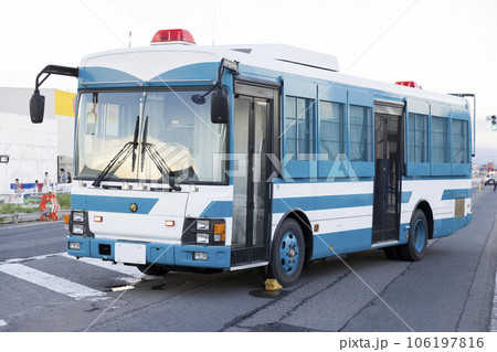 道路を通行止めにする護送車 交通規制 通行止めイメージ