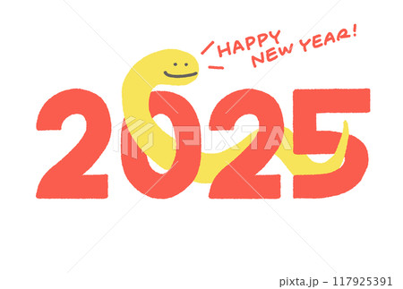2025 数字をくぐる蛇の年賀イラスト 年賀状素材 巳年