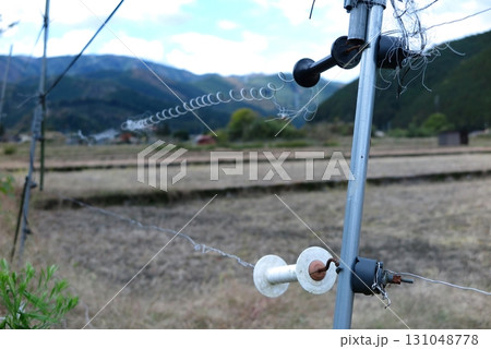 壊れた電気柵が放置されたままの、里山の畑
